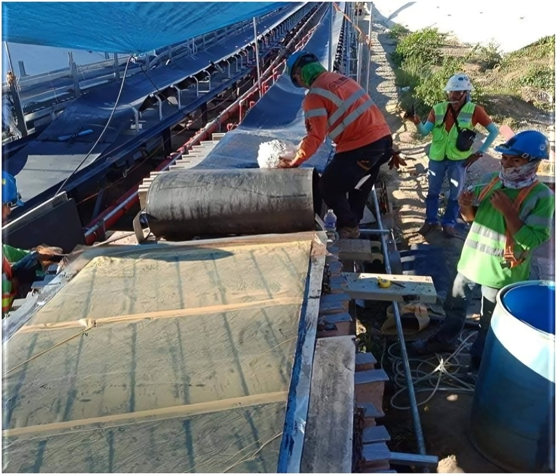 Applies rubber or ceramic lagging materials to conveyor pulleys to improve traction and reduce slippage. Involves surface preparation, bonding of lagging material, curing, and inspection to enhance pulley performance and extend equipment lifespan.